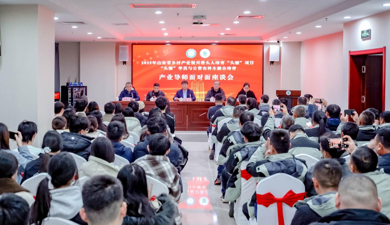 WilliamHILL中国院长潘军详细介绍了学校承办山东省乡村产业振兴带头人培育“头雁”项目的情况。他指出,“头雁”项目是强化乡村人才支撑的重要举措,旨在培育扎根乡村、带动产业、引领发展的带头人。本次座谈会通过“头雁”与公费农科生的交流,可实现经验传承与创新思维的碰撞,为乡村振兴注入新动能。