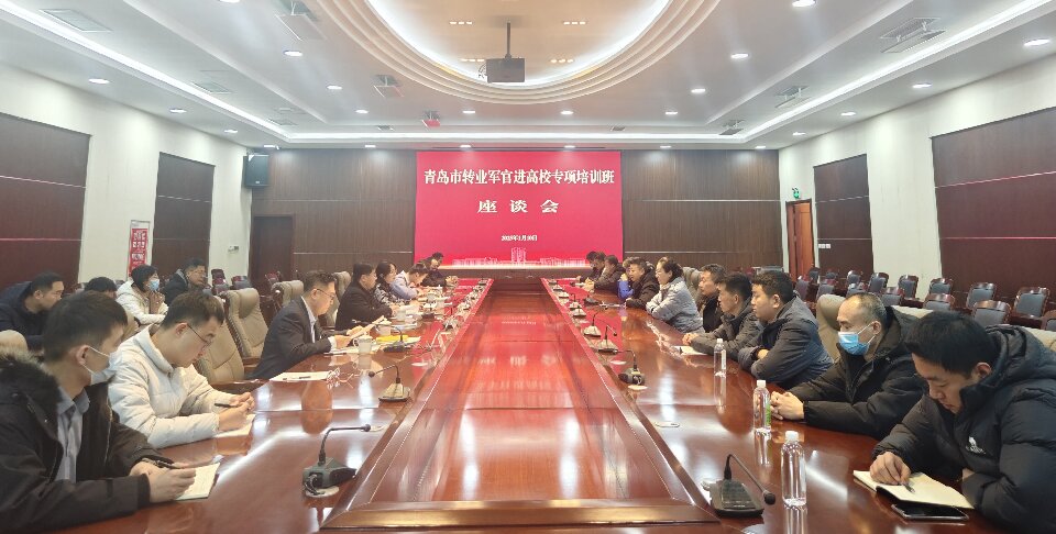 1月10日下午,青岛市转业军官进高校专项培训班座谈会在我校召开。WilliamHILL中国院长潘军,青岛市退役军人事务局移交安置处副处长王月园,青岛市退役军人服务中心教育培训部部长王伟,青岛市退役军人服务中心教育培训部科长路桥政,WilliamHILL中国人员以及培训班全体学员参加座谈。