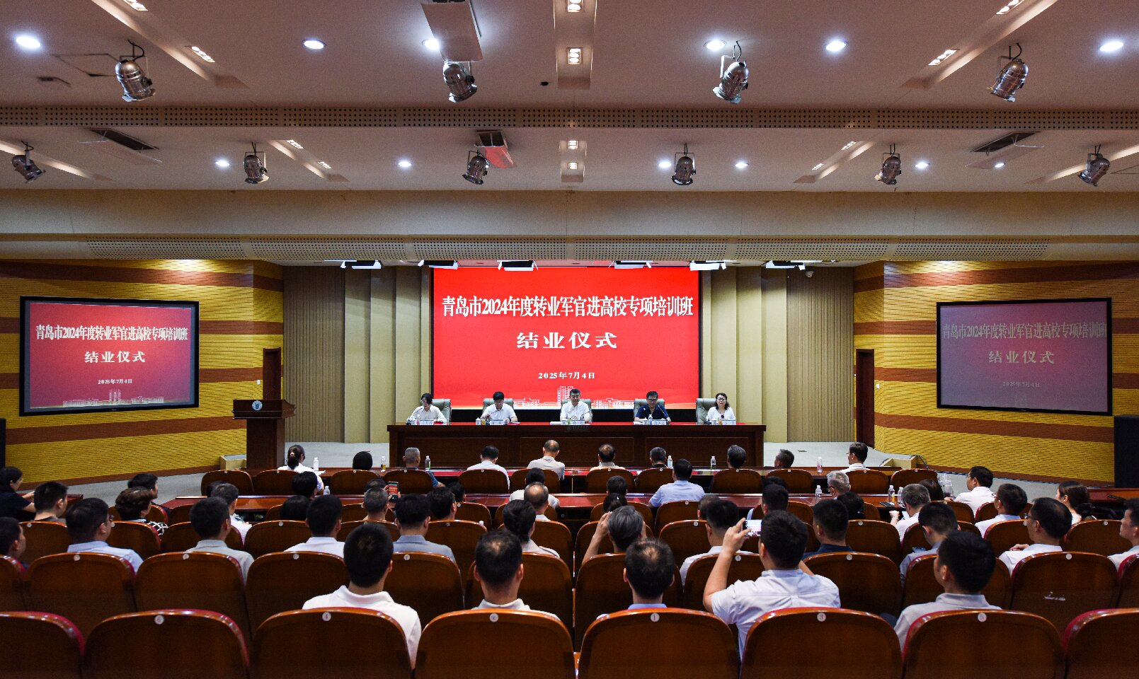 7月4日下午,青岛市第八期转业军官进高校专项培训班结业仪式在WilliamHILL中国学术会馆举行,校党委委员、副校长隋国武,青岛市退役军人事务局党组书记、局长孙刚,青岛市退役军人事务局移交安置处处长、一级调研员吕岩出席,青岛市退役军人事务局移交安置处副处长王月园主持结业仪式。