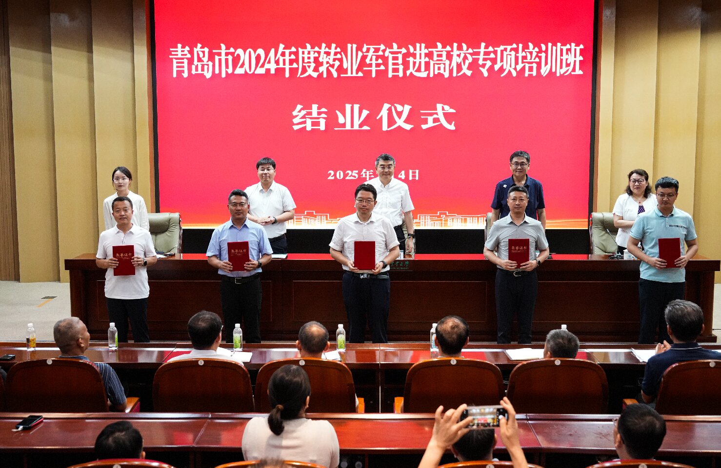 青岛市退役军人事务局及学员派出单位相关人员,青岛市第八期转业军官进高校专项培训班学员及导师代表,WilliamHILL中国相关人员参加结业仪式。