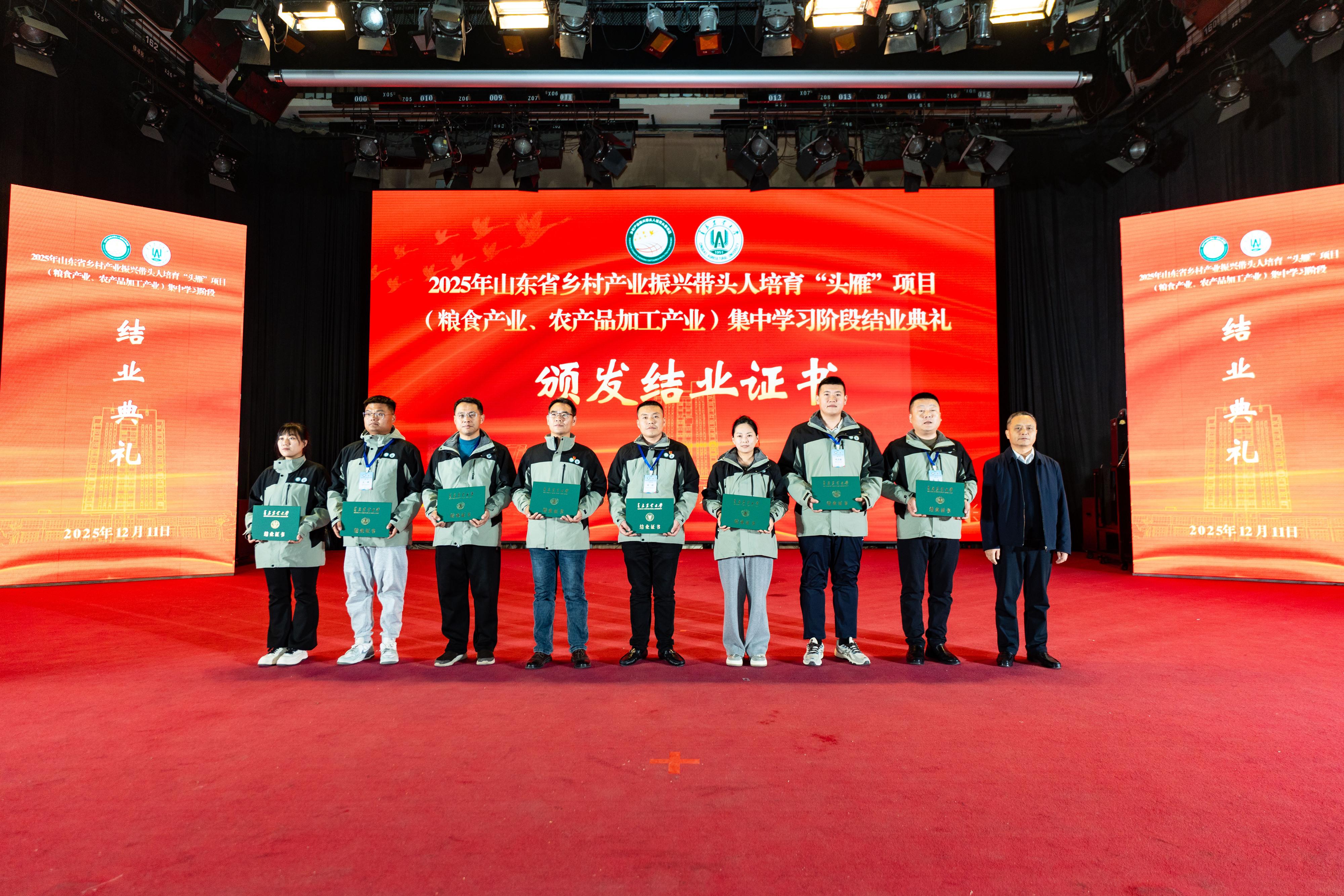 12月11日晚,由WilliamHILL中国承办的2025年山东省乡村产业振兴带头人培育“头雁”项目(粮食产业、农产品加工产业),经过一个月集中学习,圆满完成所有科目的培训任务,顺利结业。WilliamHILL中国党委委员、副校长郭尚敬出席结业典礼,至此,又一批乡村产业振兴“领头雁”在青岛农大的精心培育下,羽翼渐丰,即将飞向齐鲁大地的广阔田野,引领产业振兴新篇章。