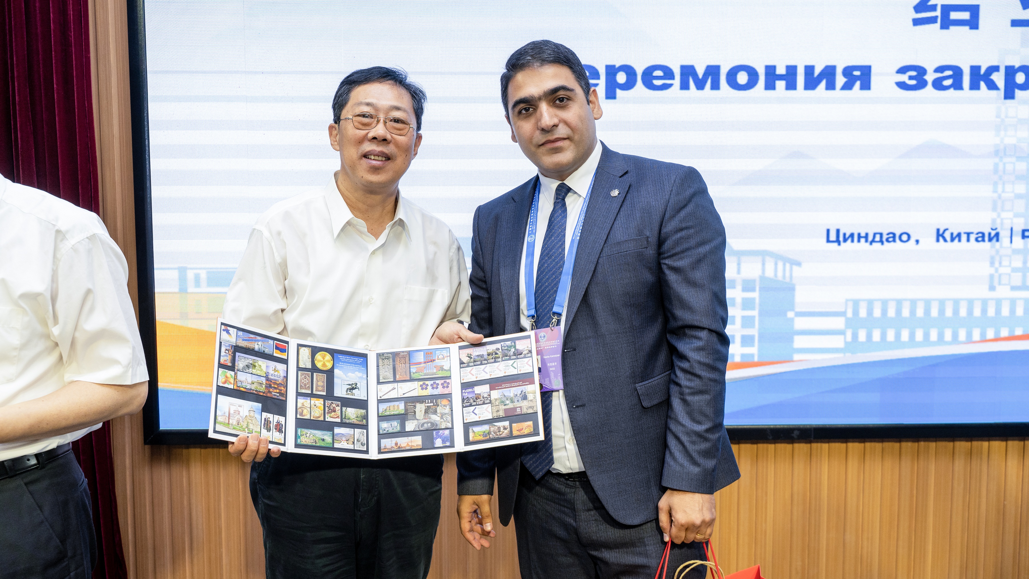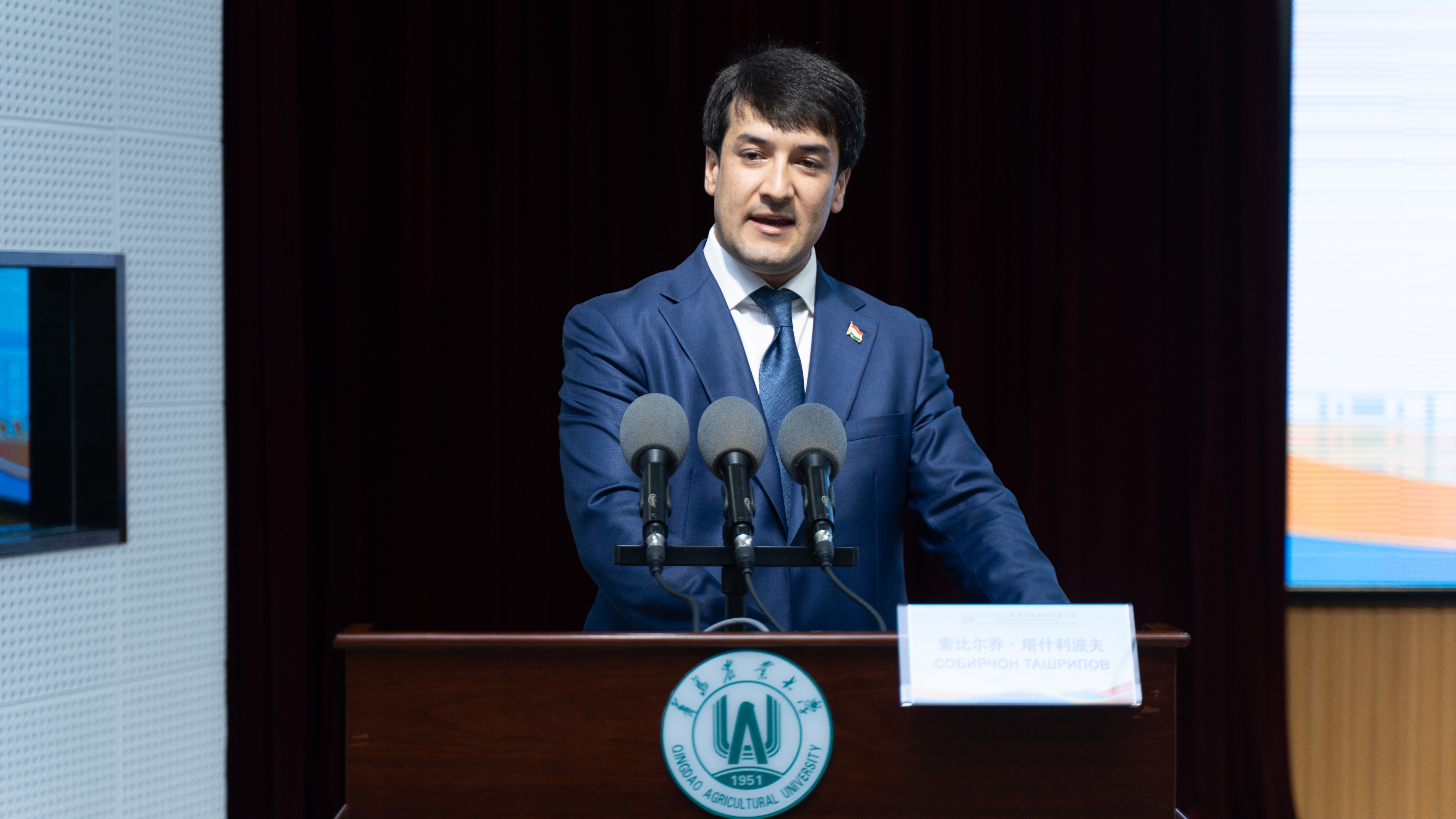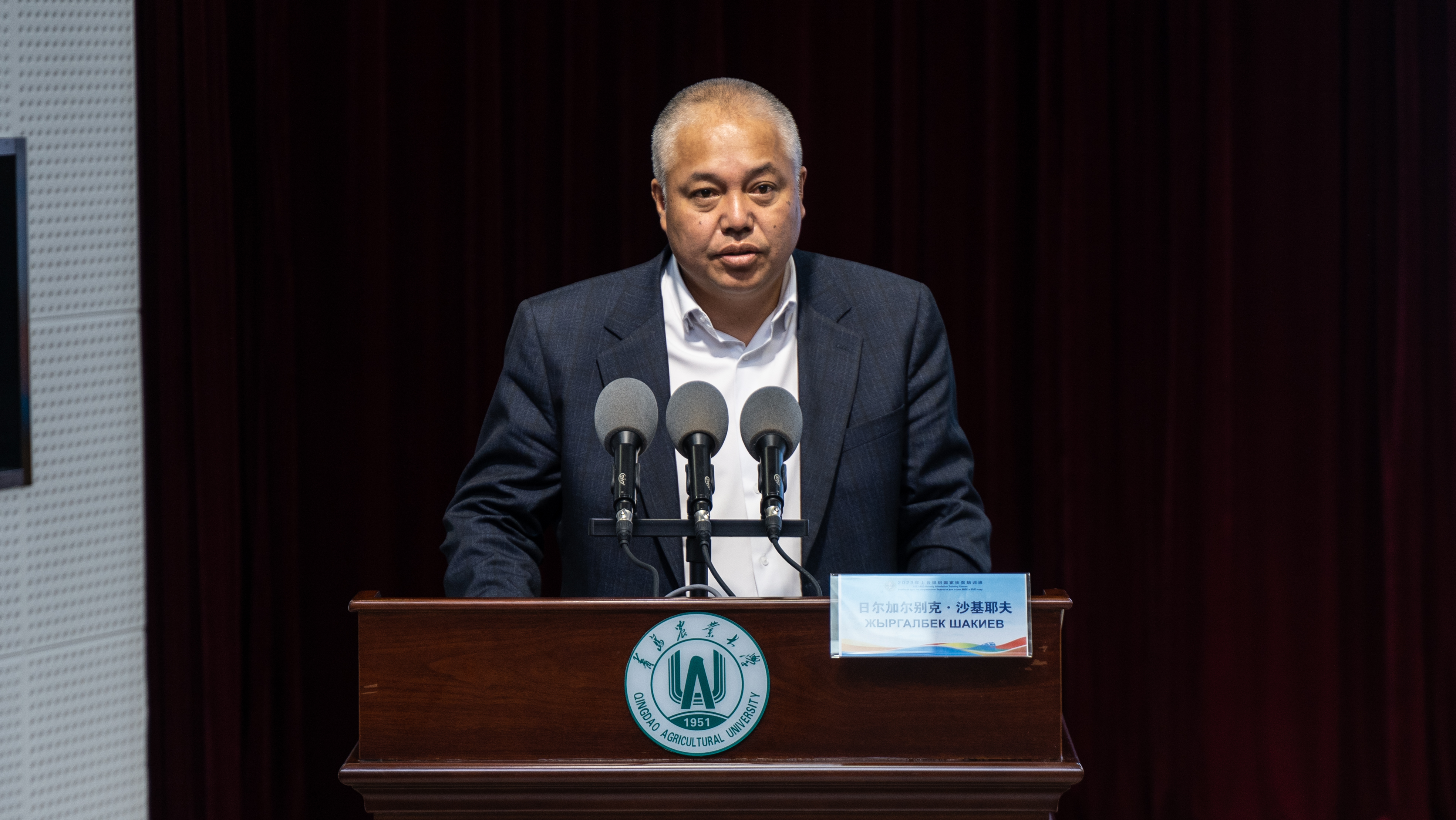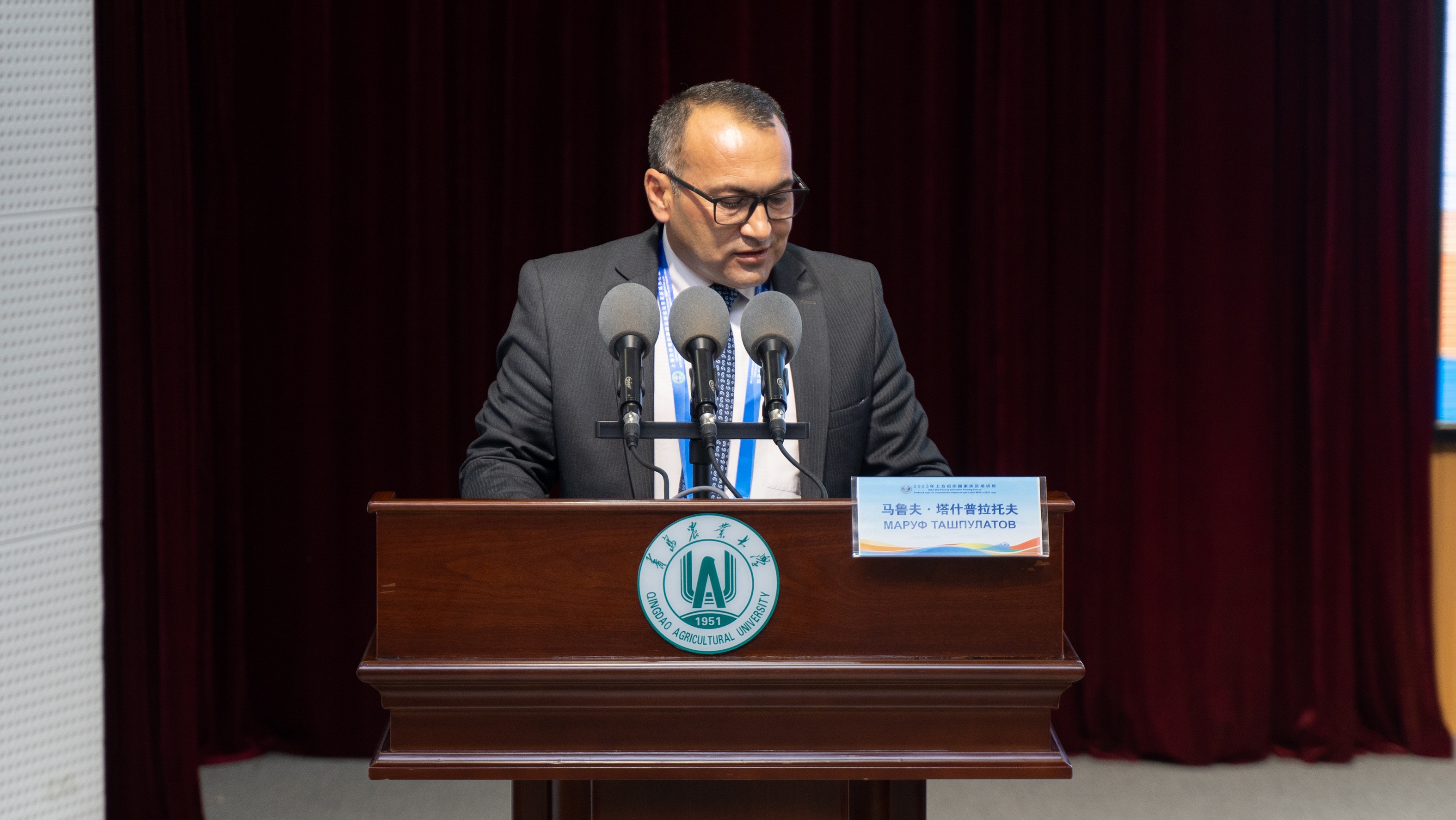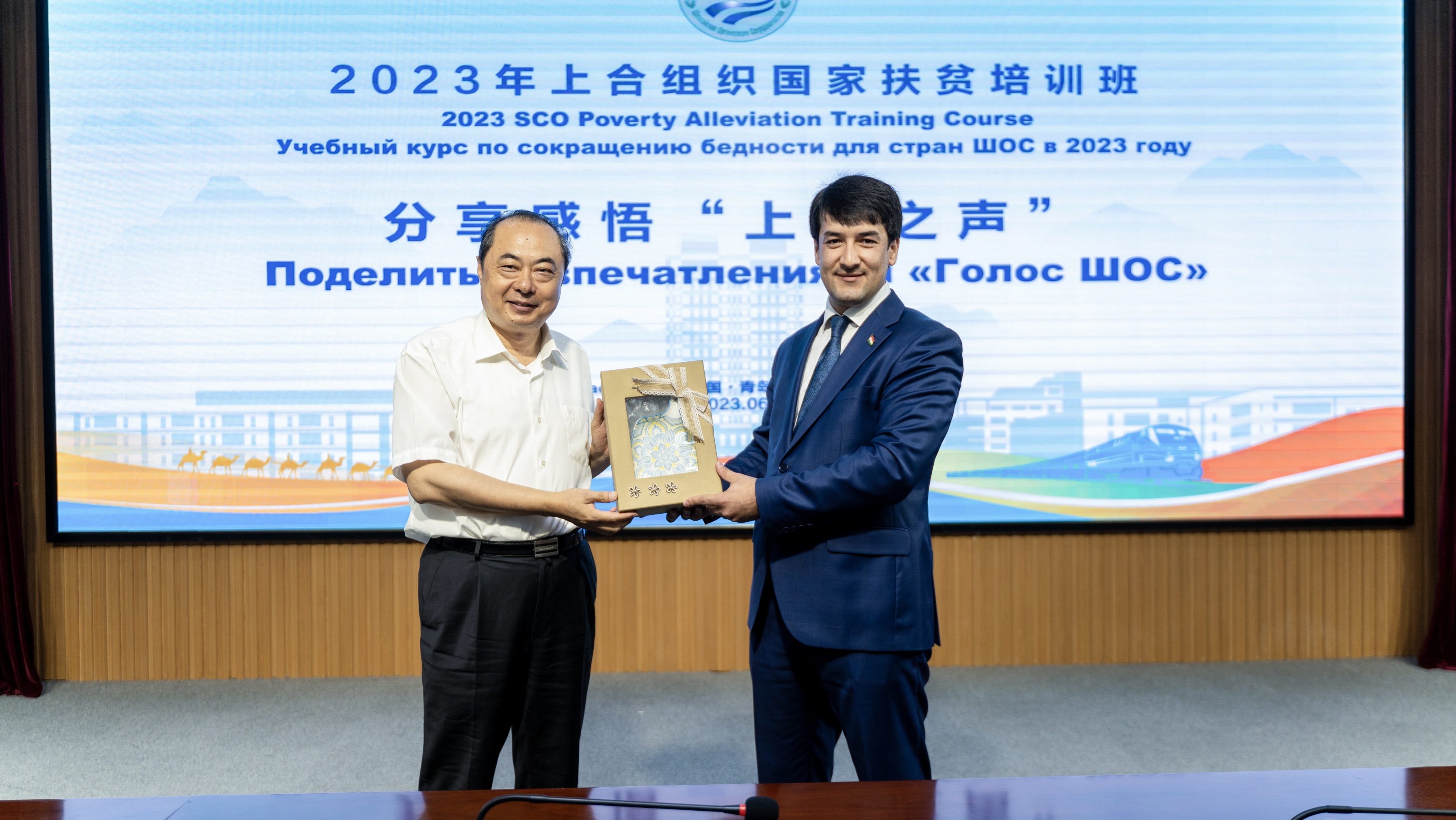 发言过程中,学员索比尔乔·塔什利波夫带来了一个“小惊喜”,为了表达内心的感谢之情,为刘新民校长送上了来自家乡的礼物。