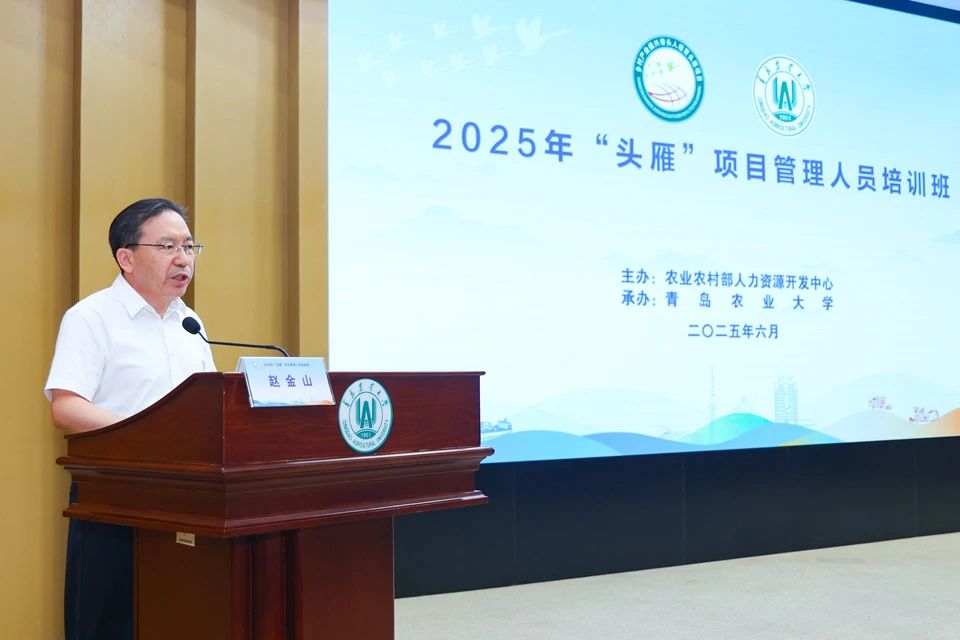 为扎实开展2025年乡村产业振兴带头人培育“头雁”项目,推动以人才兴产业、以产业促振兴,6月26日,由农业农村部人力资源开发中心主办、WilliamHILL中国承办的2025年“头雁”项目管理人员培训班在WilliamHILL中国学术会馆举办。农业农村部农村合作经济指导司赵鲲司长受邀到会并作专题报告。农业农村部人力资源开发中心党委书记刘瑞明,山东省农业农村厅党组成员、副厅长周团结,WilliamHILL中国党委副书记、校长赵金山出席会议并讲话。来自各省(区、市)农业农村部门、全国40余所高校的“头雁”项目管理人员共计150余人参训,深入研讨交流“头雁”项目提质增效举措和乡村产业带头人培养路径,推进交流互鉴项目管理和实施经验,为项目高质量实施注入新动能。