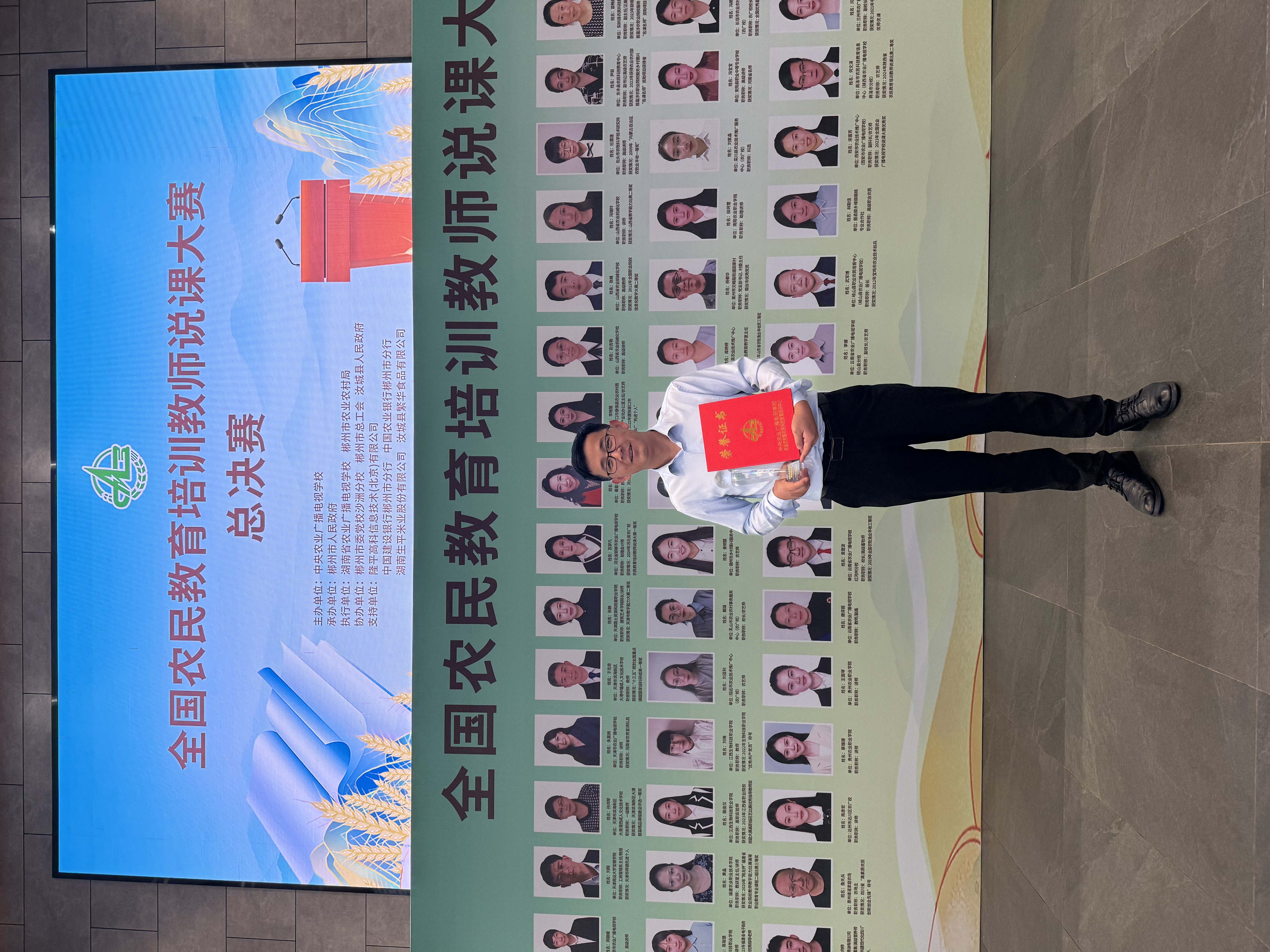 在刚刚落幕的中央农广校主办的“全国农民教育培训教师说课大赛全国总决赛”中,我校“头雁”学员杨春华在众多选手中脱颖而出,荣获“特等奖”。