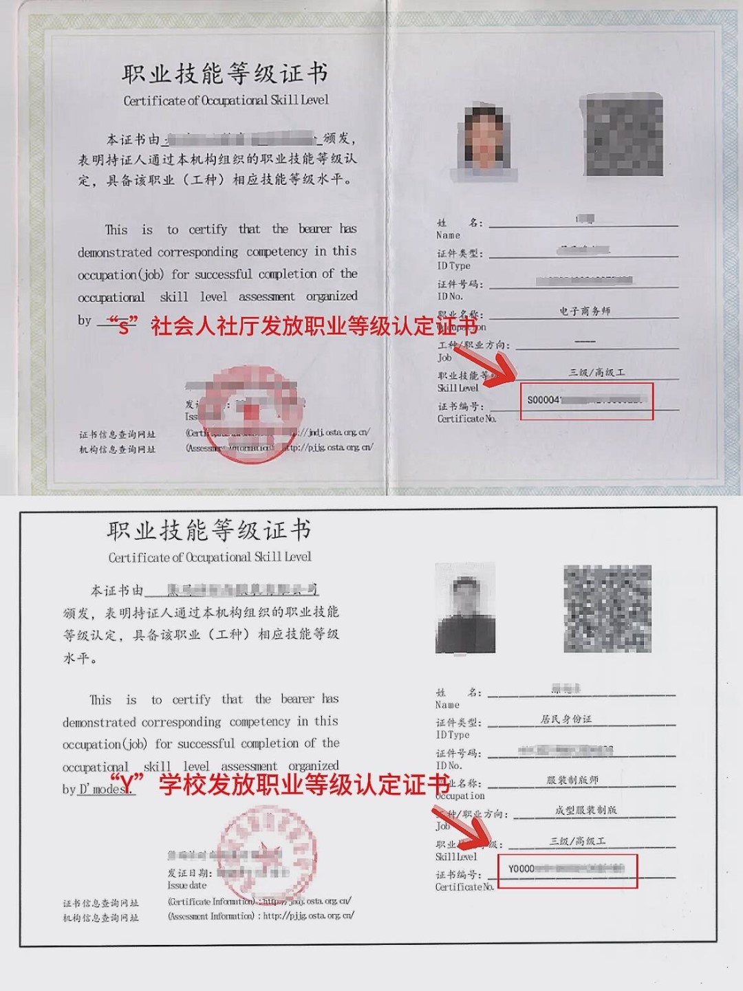 2、企业单位(学校)组织考试 发放的职业技能等级证书为Y字开头。